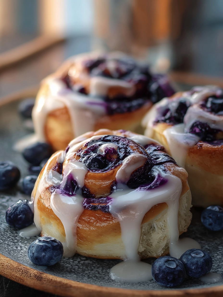 These blueberry cinnamon rolls are soft and rich with swirls of berry filling, a generous blanket of cream cheese icing, and fresh berries on top, making every bite feel like a little celebration.