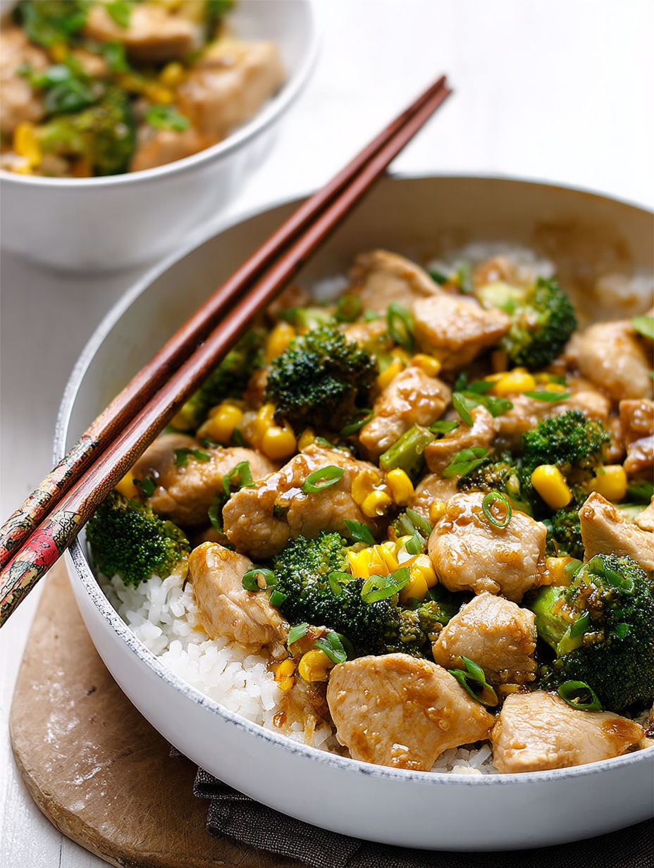 This chicken broccoli and corn stir fry is a simple modern adaptation that blends classic stir fry technique with familiar ingredients.
