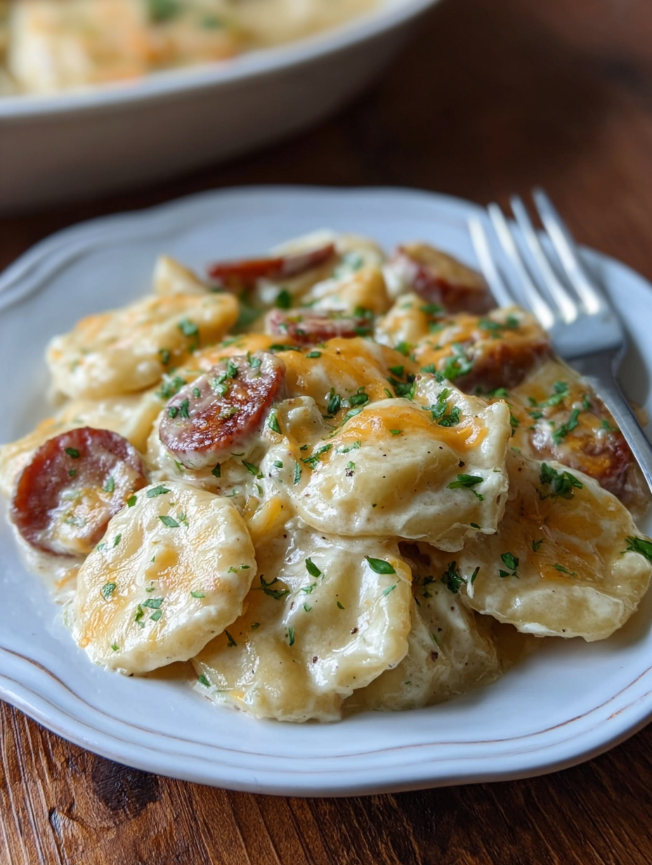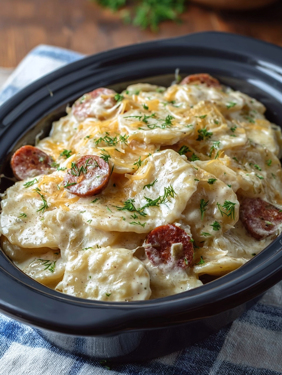 Crock-Pot Pierogi Casserole With Cheesy Layers, Smoky Kielbasa, And Tender Dumplings That Taste Like Pure Comfort