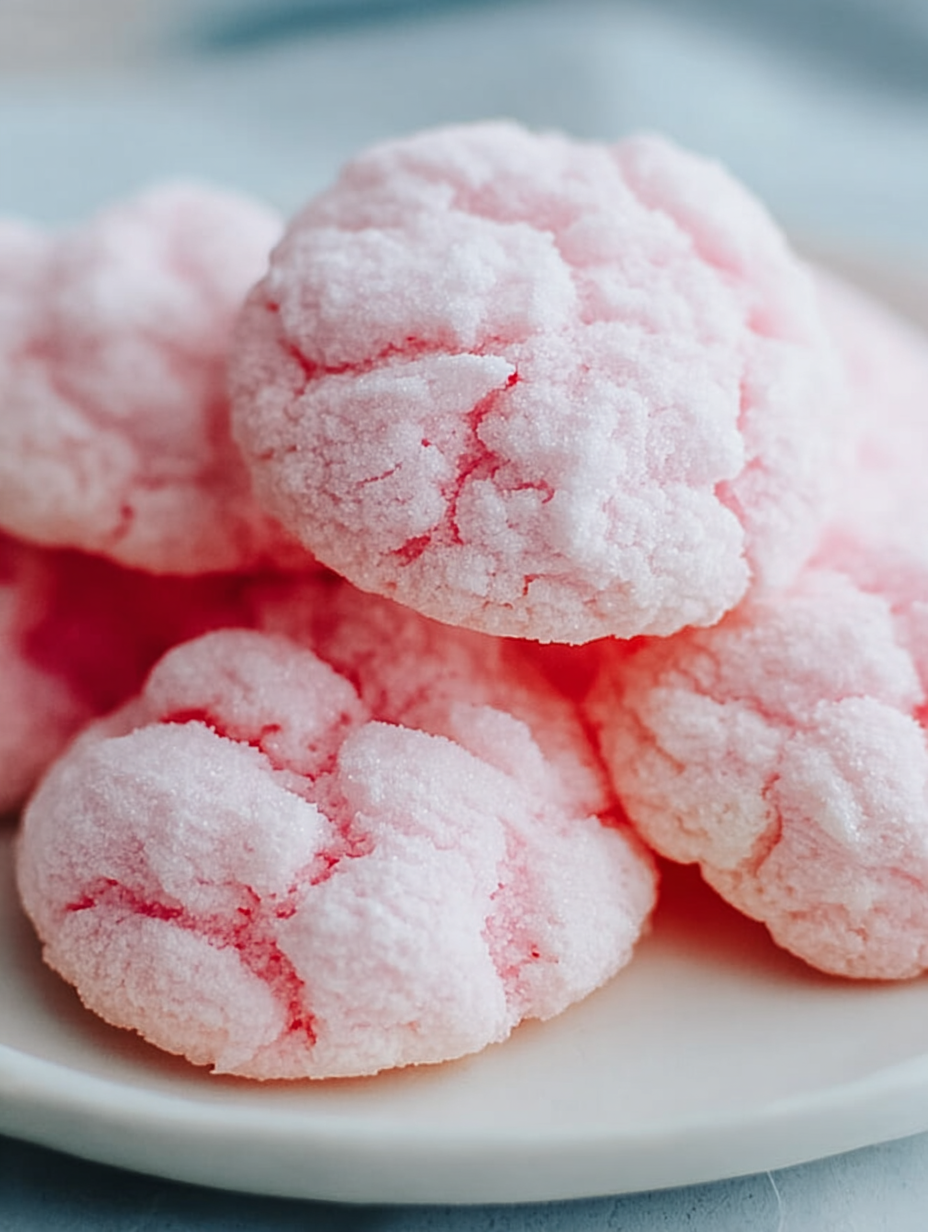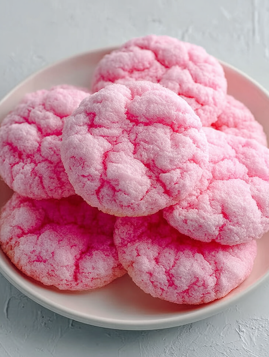 Pink Cotton Candy Cookies That Bake Up Soft, Cloud-Like, And Crackled With A Playful Carnival Sweetness